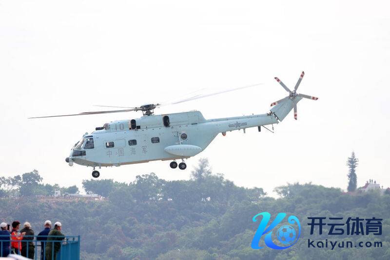 ↑11月9日,舟师直-20J舰载直升机在广东珠海进行合适性飞行检修。 新华社发(马睿昭 摄)