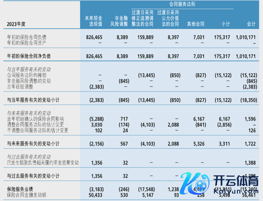 2023年新华东说念主寿保障条约的践约现款流量和条约办事边缘余额退换表(节选);单元:百万元;数据着手:企业公告