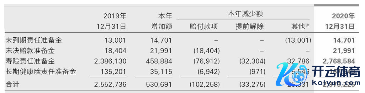 2020年中国东说念主寿保障条约准备金增减变动表;单元:百万元;数据着手:企业公告