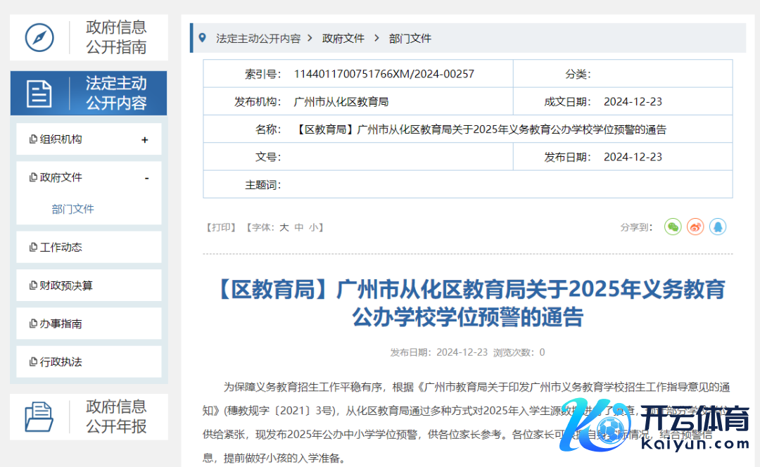 12月23日,广州市从化区教育局发布了《对于2025年义务教育公办学校学位预警的告示》(下称“《告示》”)。
